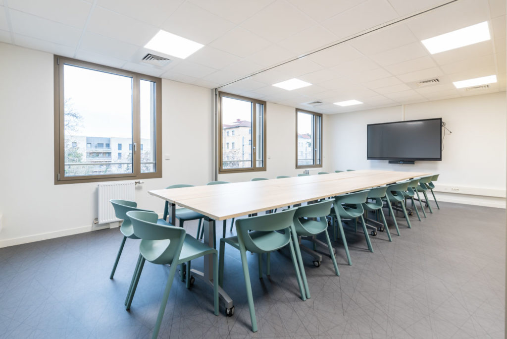 • Un espace de réunion : Nous avons intégré nos tables MODULO, modulables et ergonomiques, pour créer un environnement propice aux réunions et aux échanges formels. Cette disposition offre un certain degré de confidentialité, essentiel pour des discussions professionnelles.