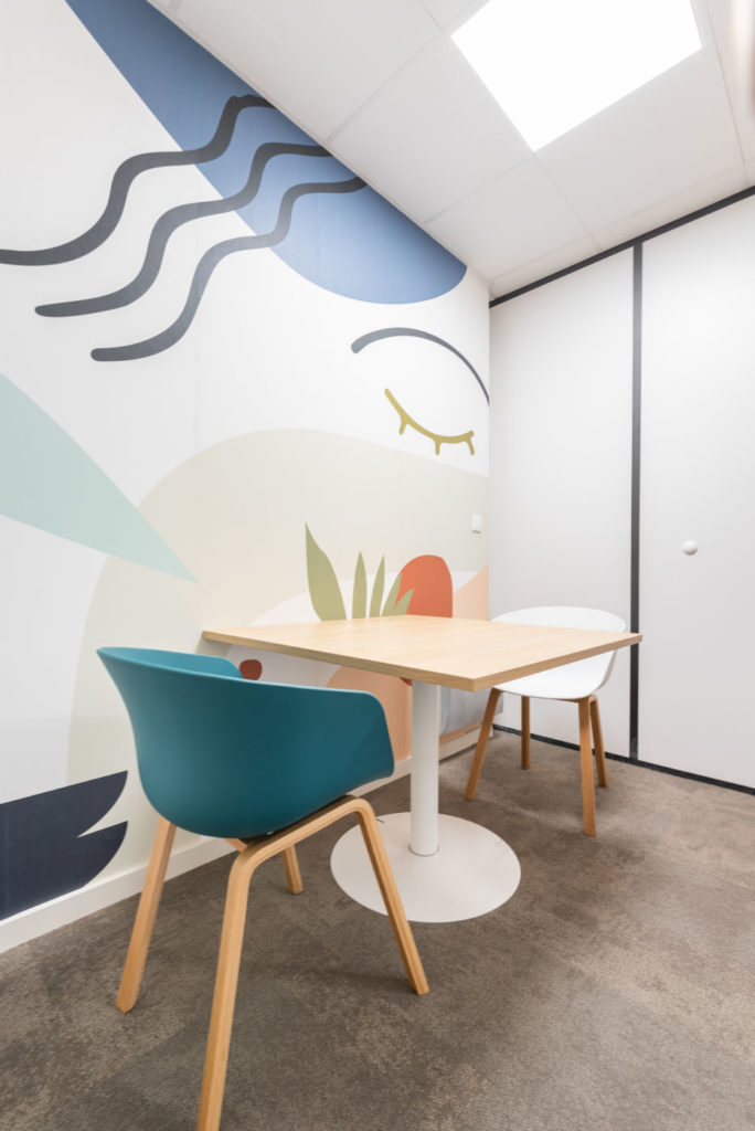 L’environnement de travail a été minutieusement conçu dans des tons verts, une palette apaisante favorisant la concentration et le bien-être. Nos spécialistes ont sélectionné avec soin du mobilier de bureau adapté pour chaque poste de travail, offrant à chaque collaborateur un espace fonctionnel et ergonomique.