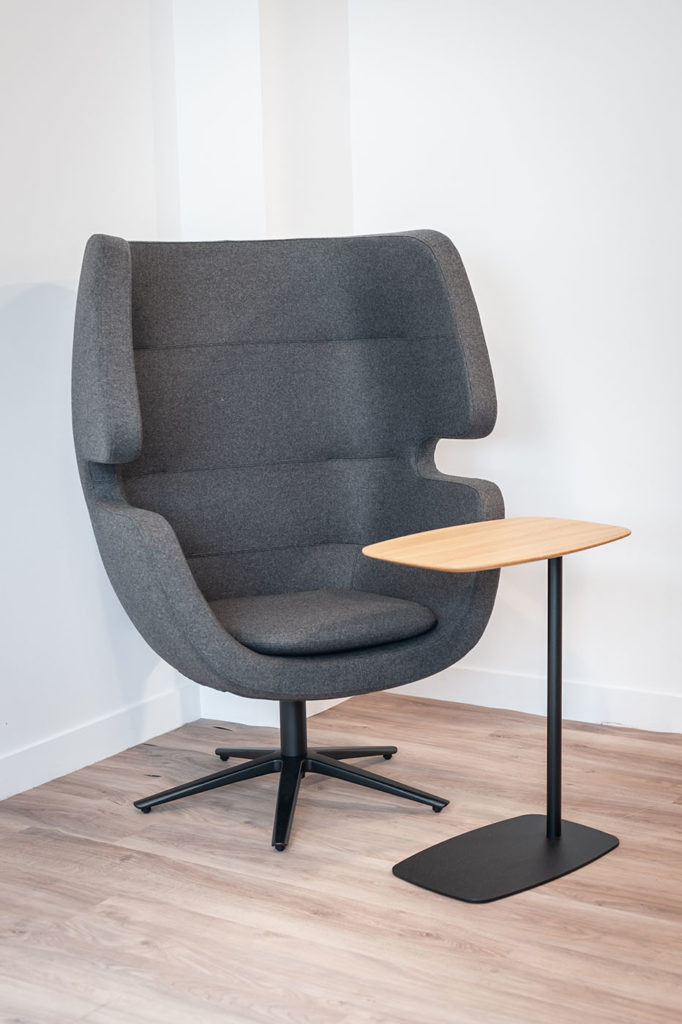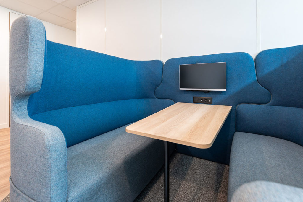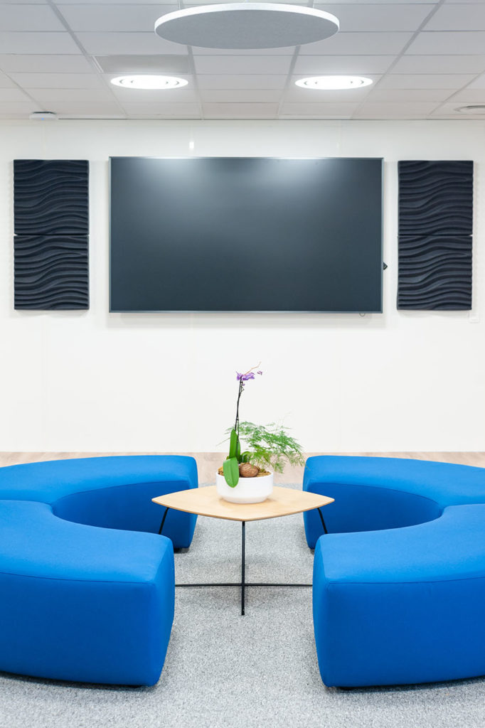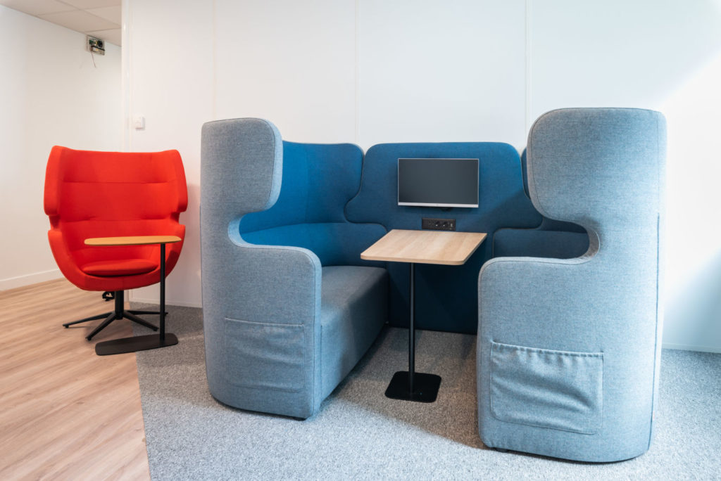 Par ailleurs, un espace détente a été aménagé avec une cellule acoustique Imagine. Cette cellule acoustique offre un refuge tranquille où les collaborateurs peuvent s’isoler pour se concentrer, passer des appels téléphoniques confidentiels ou simplement se détendre. Grâce à ses matériaux absorbants et à son design innovant, la cellule acoustique Image crée un environnement calme et apaisant, préservant ainsi la concentration et favorisant la productivité dans un environnement de travail souvent animé.