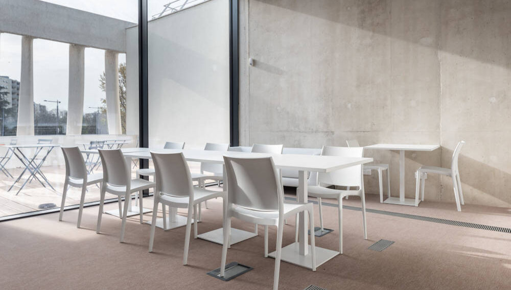 Chaque élément de mobilier a été soigneusement choisi pour répondre aux exigences de fonctionnalité, de durabilité et d’esthétique de la médiathèque. Les tables ont été conçues pour offrir un espace de travail ergonomique et polyvalent, tandis que les chaises ont été sélectionnées pour leur confort. Les armoires de rangement et les étagères ont été pensées pour optimiser l’espace et faciliter l’organisation des documents et du matériel.